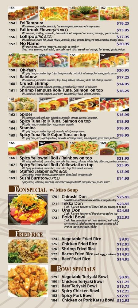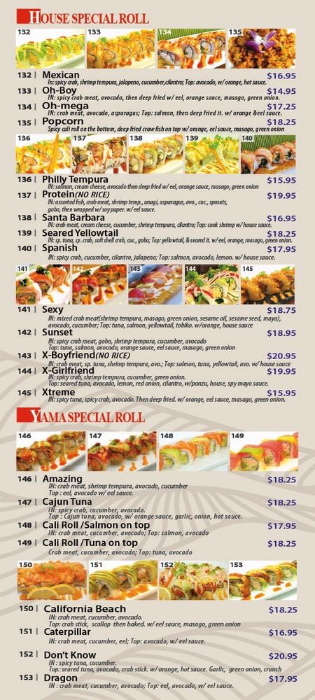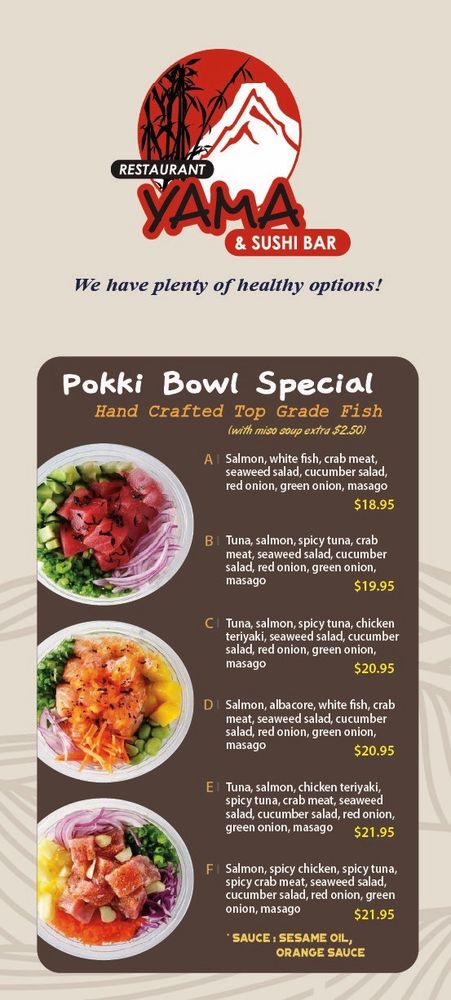 Welcome to Yama Sushi Restaurant, where culinary excellence meets a vibrant atmosphere! Located at 1067 S Main Ave in Fallbrook, CA, Yama Sushi offers a diverse menu that ensures every palate is pleased. Their specialty lies in fresh sushi rolls, ranging from house favorites at just $8-$10 to gourmet selections priced between $13-$18. With happy hour specials to tantalize your taste buds, it’s a budget-friendly haven for sushi lovers.
